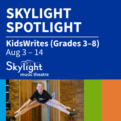 Skylight Music Theatre’s new partnership with Sharon Lynne Wilson Center, our new KidsWrites program invites students to dive into storytelling as writers and performers. Over two immersive weeks at the Sharon Lynne Wilson Center, they not only write original stories, but also perform them as the actors in a brand-new musical production. With guidance from professional teaching artists, each child brings their own words and characters to life on stage. It’s a one-of-a-kind creative adventure!